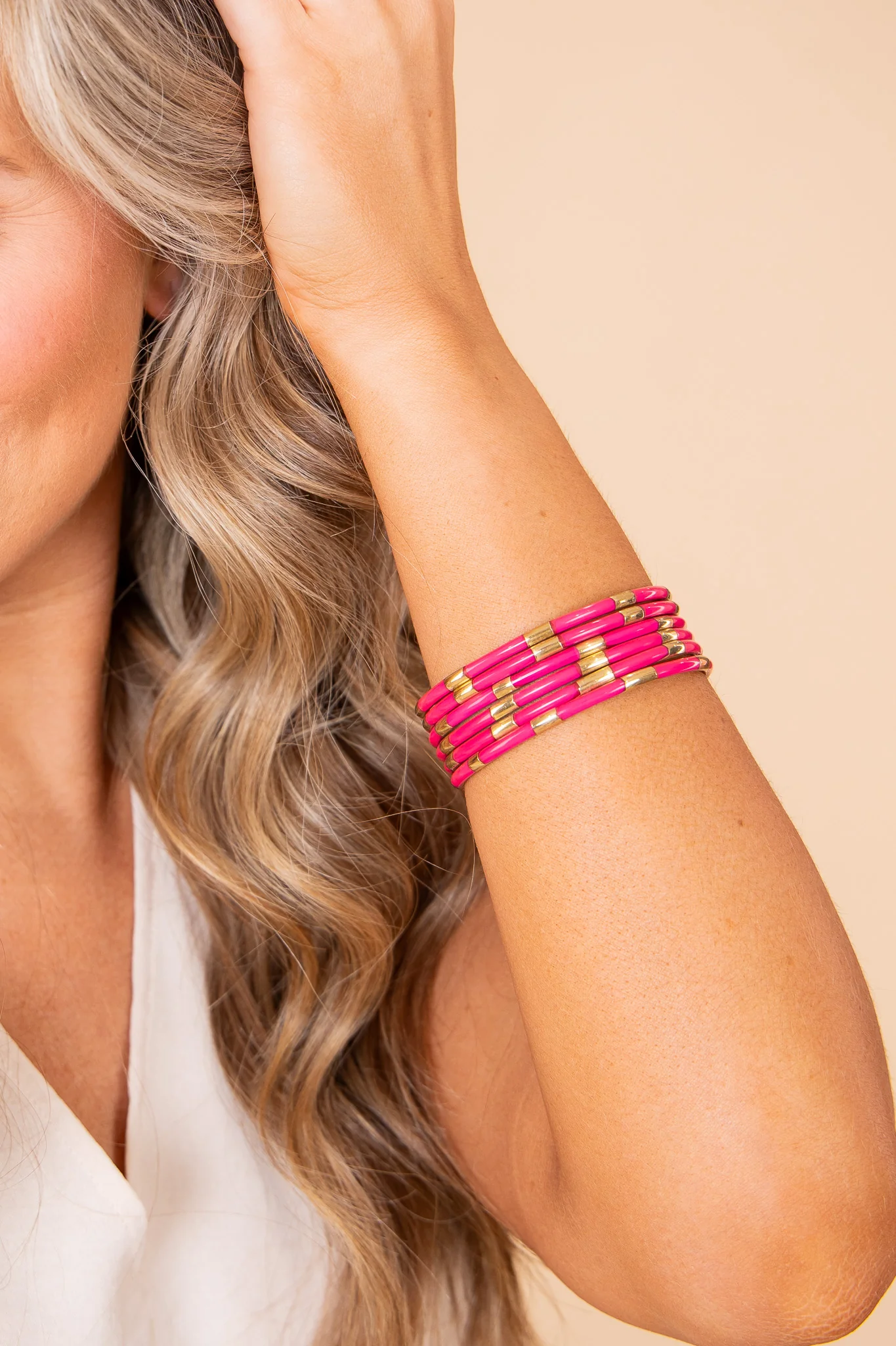 The allure of enamel is captured in our delicate set of six Veda bracelets. They are combined with color and gold enamel for a modern must-have bracelet set, to stack or combine with your gold and white budhagirls. A Great layering add on piece to any bracelet set, or wear by themselves.