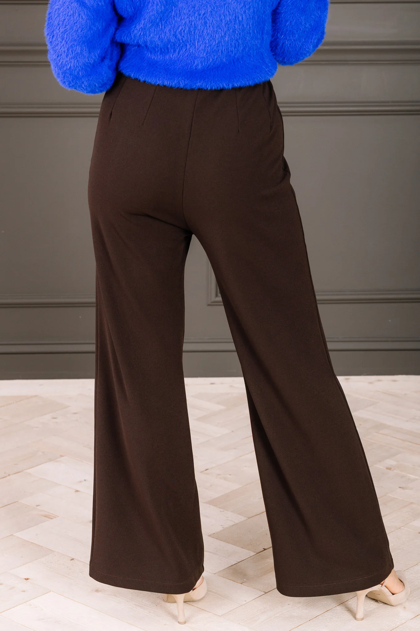 The Sweet as Can Be Brown Wide Leg High Waisted Pant offers a comfortable fit with a seamless waistband and a side zip closure. Its wide leg and classy design make it perfect for both casual and dressy occasions.