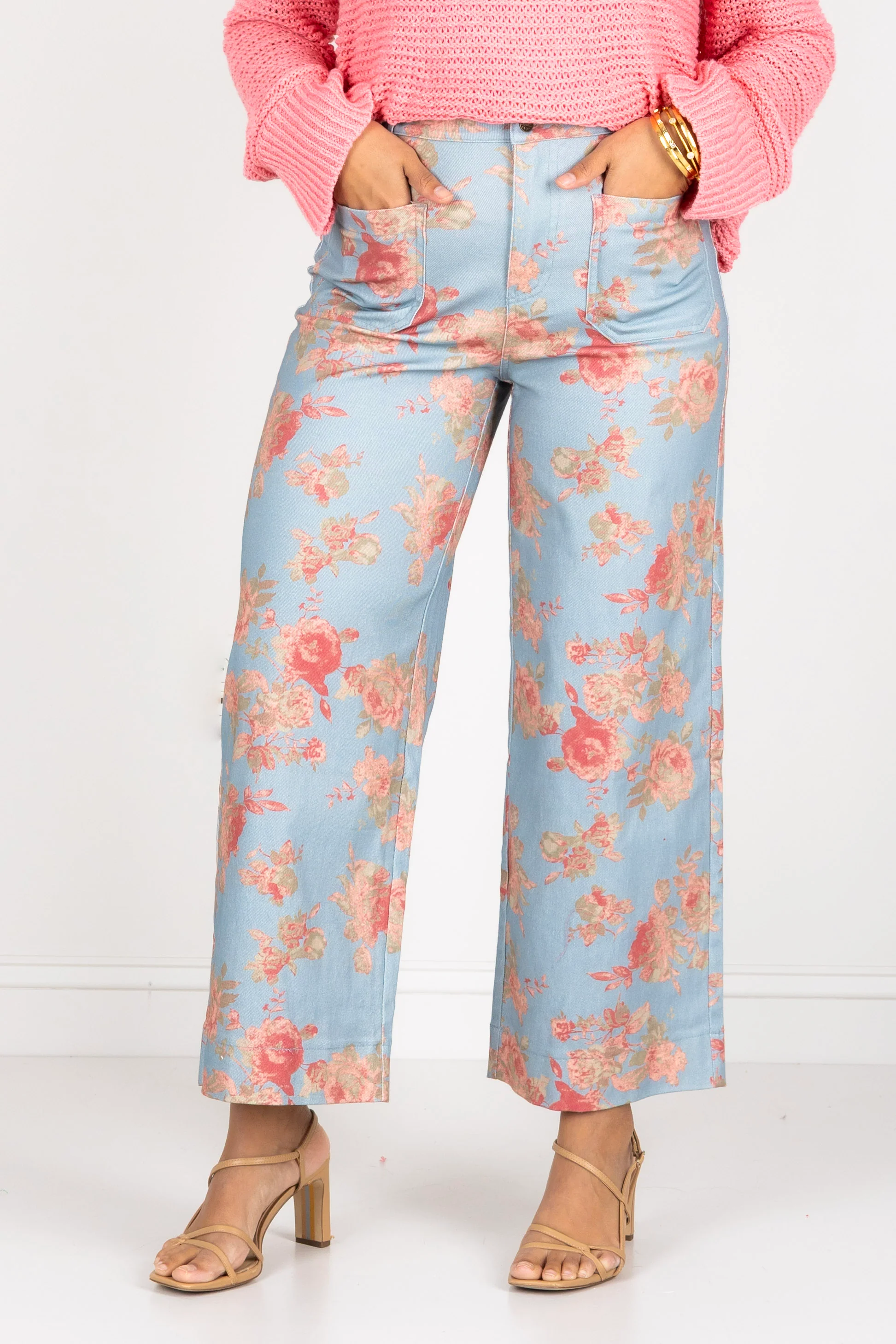 Come Over Blue Floral Print Wide Leg Pant