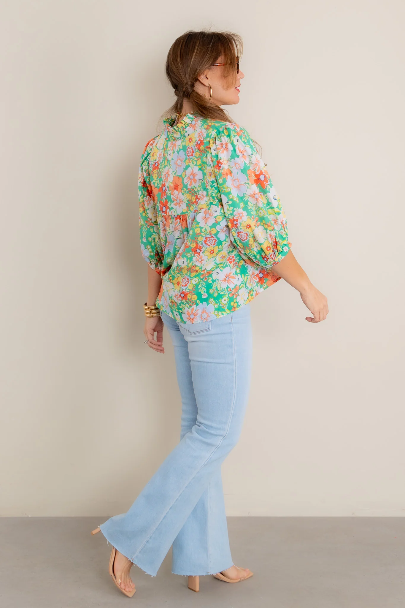 Featuring a ruffle detailed collar and v-neckline, this top exudes elegance. The breathable material and long sleeves make it perfect for any occasion. Its delicate floral print adds a touch of luxury and femininity to your look.