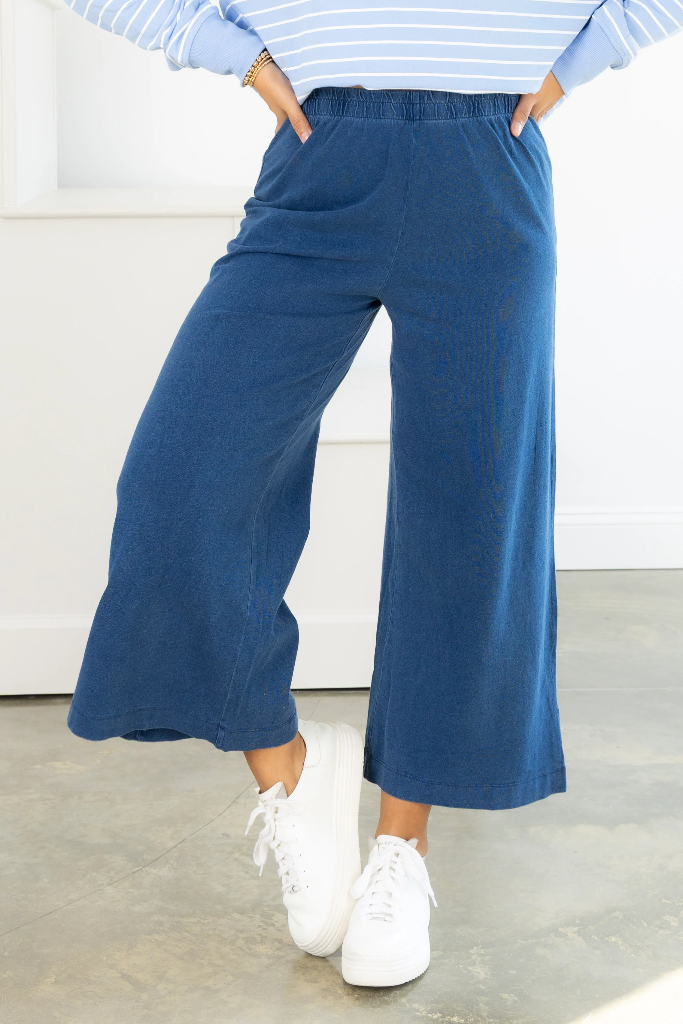 This Wide Leg Pant features a comfortable elastic pull-on waistband and a high waist for a flattering fit. Its cropped wide leg silhouette offers a relaxed, stylish look perfect for everyday wear.