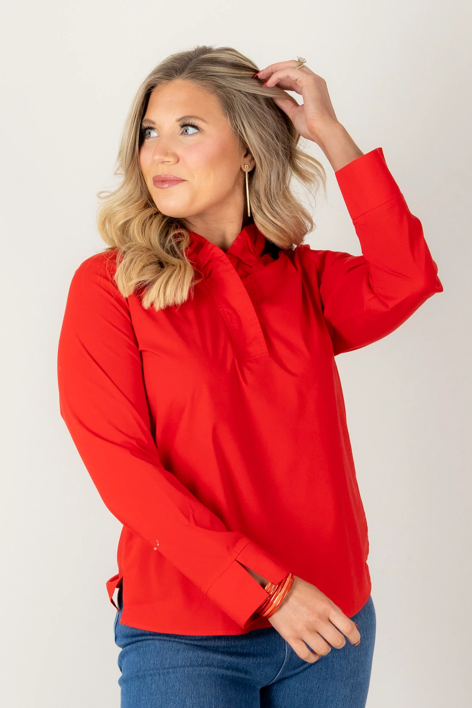 Foxcroft Tammy Simply Red Long Sleeve Popover Blouse